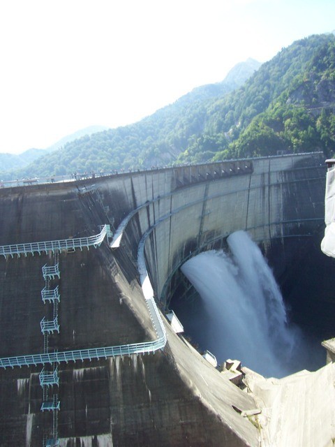 2009-09-19 黒部ダム travel トロリーバスを降りて、しばし歩いて黒部ダム。個人的には「黒四ダム」というほうがピンとくる。 高けえーーこえええーーーー無理無理無理無理無理 だめだこりゃ。とても端っこに近寄れない。 見下ろすと虹が出てました。