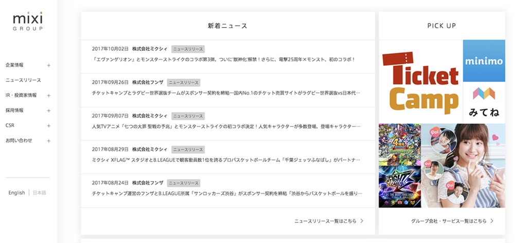 2017-10-12 会社のサイトをリニューアルしたよ tech diary というわけで、会社のサイトをリニューアルしましたん。 コンセプトは、すっきりシンプル、上品な「素うどん」です。 コーポレートサイト自体には、モンストやSNSやチケキャンやマッチングやみてねやノハナの味や色はつけないわけです。 よろしくどうぞ。